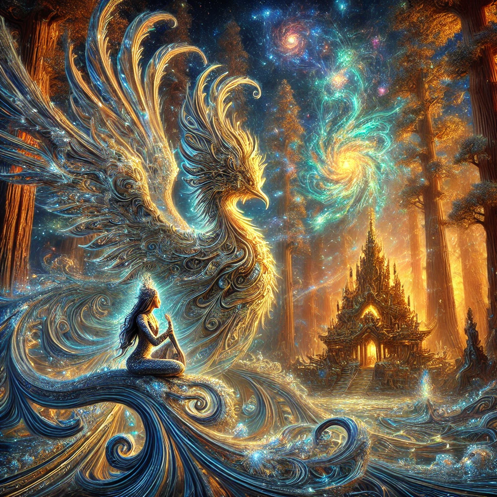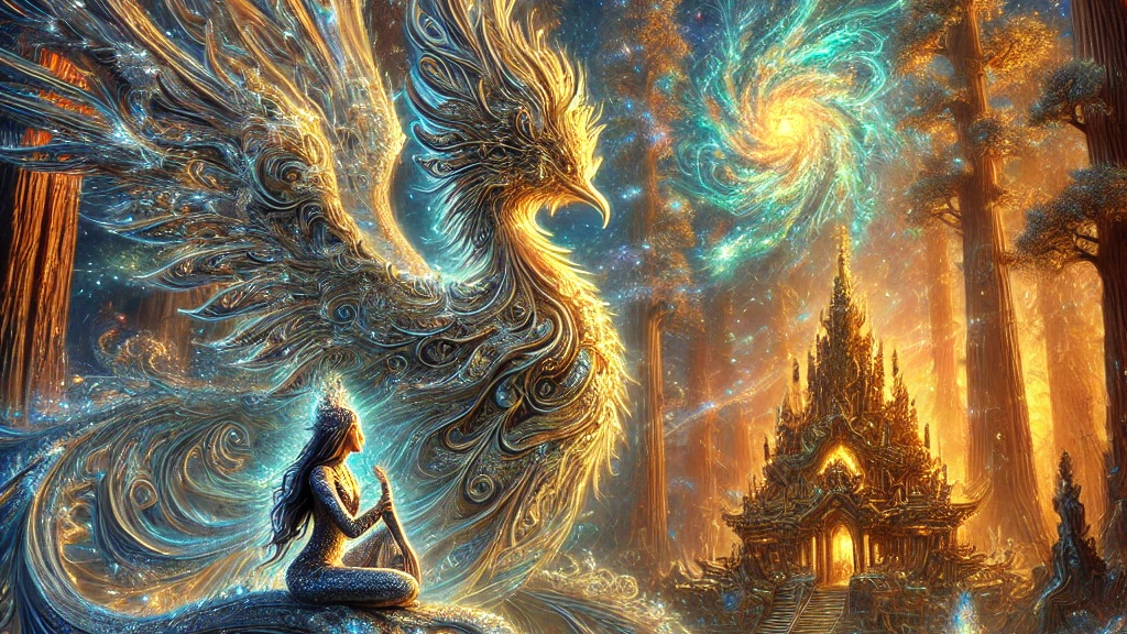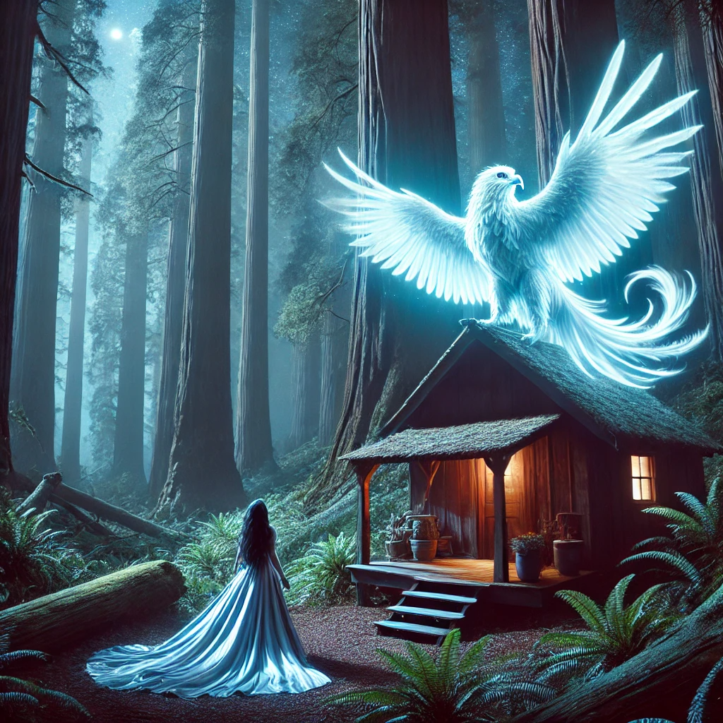 This bird was not just a bird. It was an interdimensional being, a manifestation of the energy field created by the Garuda Maruda and the redwoods. It had come through the portal I had glimpsed, its presence tied to the latticework of energy that stretched between dimensions. It wasn’t entirely physical—its form flickered between the seen and unseen—but its song, its frequency, was as real as my own breath.